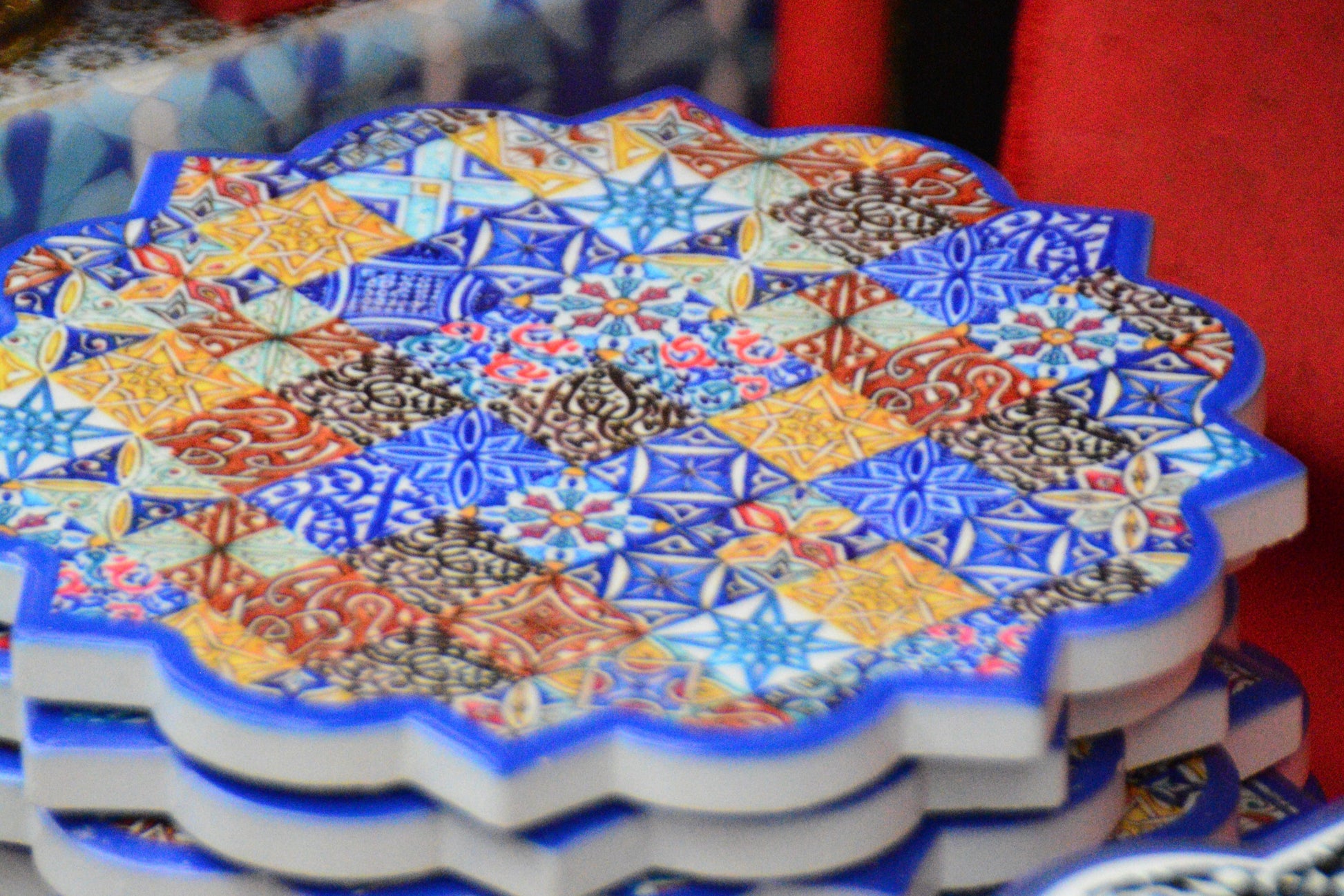 🌀 Nasze podkładki wykonane zostały własnoręcznie przez marokańskich rzemieślników w Fez – mieście słynącym z mistrzowskiej obróbki glazury. Stworzone z autentycznej mozaiki zellige, zachwycają precyzyjnym wzornictwem i bogactwem kolorów. Ich powierzchnia składa się z ręcznie ciętych kafelków, które tworzą geometryczne wzory inspirowane tradycyjną sztuką marokańską.