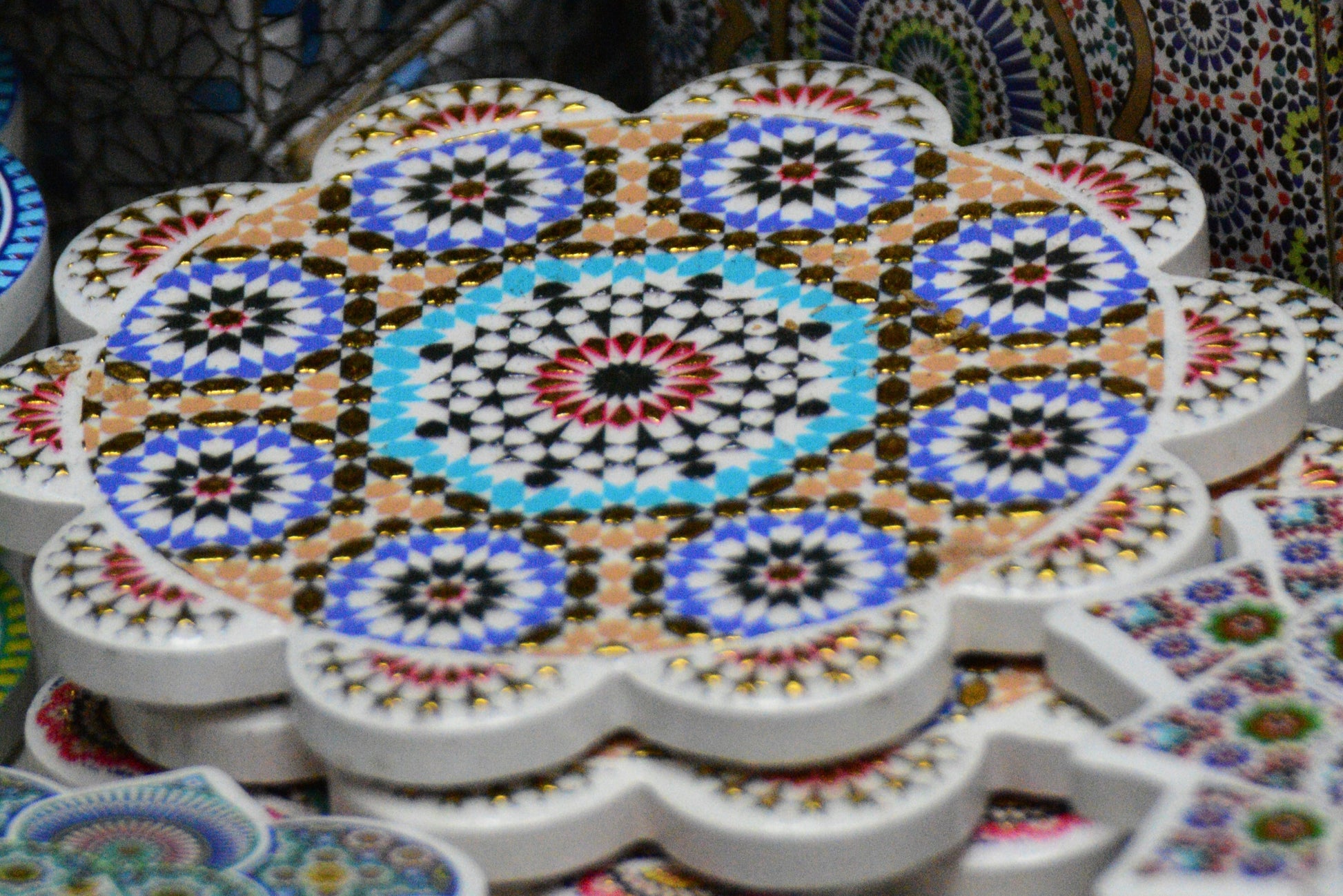 🌀 Nasze podkładki wykonane zostały własnoręcznie przez marokańskich rzemieślników w Fez – mieście słynącym z mistrzowskiej obróbki glazury. Stworzone z autentycznej mozaiki zellige, zachwycają precyzyjnym wzornictwem i bogactwem kolorów. Ich powierzchnia składa się z ręcznie ciętych kafelków, które tworzą geometryczne wzory inspirowane tradycyjną sztuką marokańską.