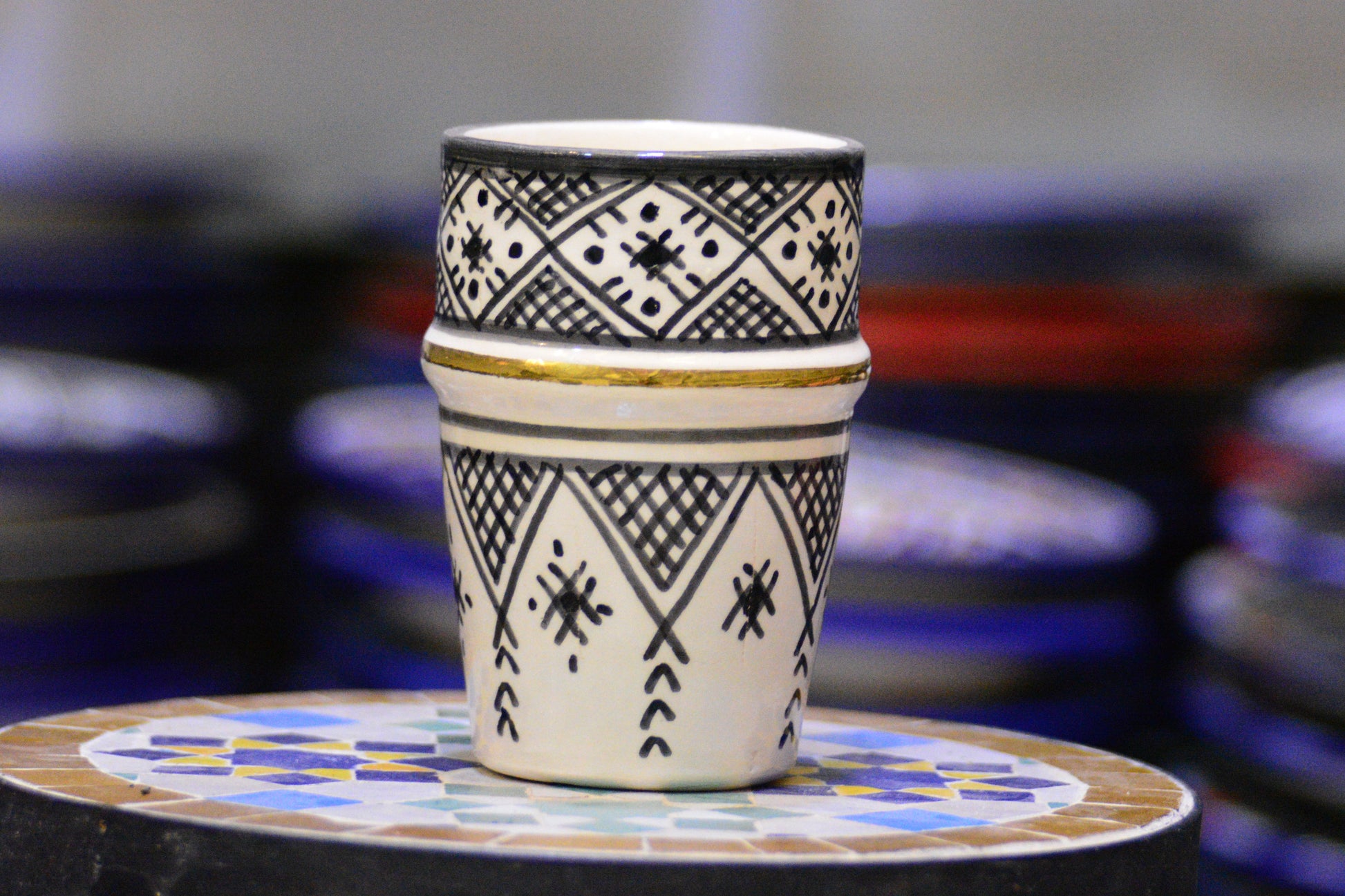 Dzięki unikalnemu procesowi tworzenia nie ma dwóch identycznych egzemplarzy – każdy kubek jest małym dziełem sztuki, w którym można dostrzec piękno marokańskiego rzemiosła. Ich ergonomiczny kształt isprawiaja, że idealnie leżą w dłoni, a bogate wzornictwo dodaje im wyjątkowego uroku.