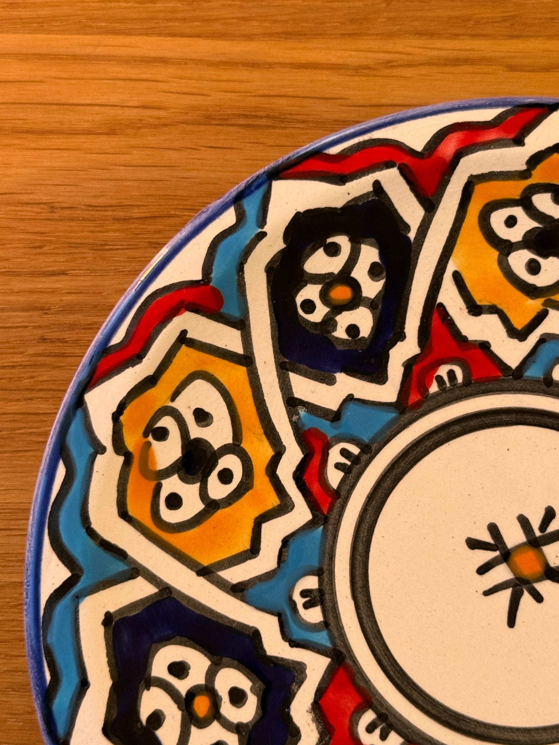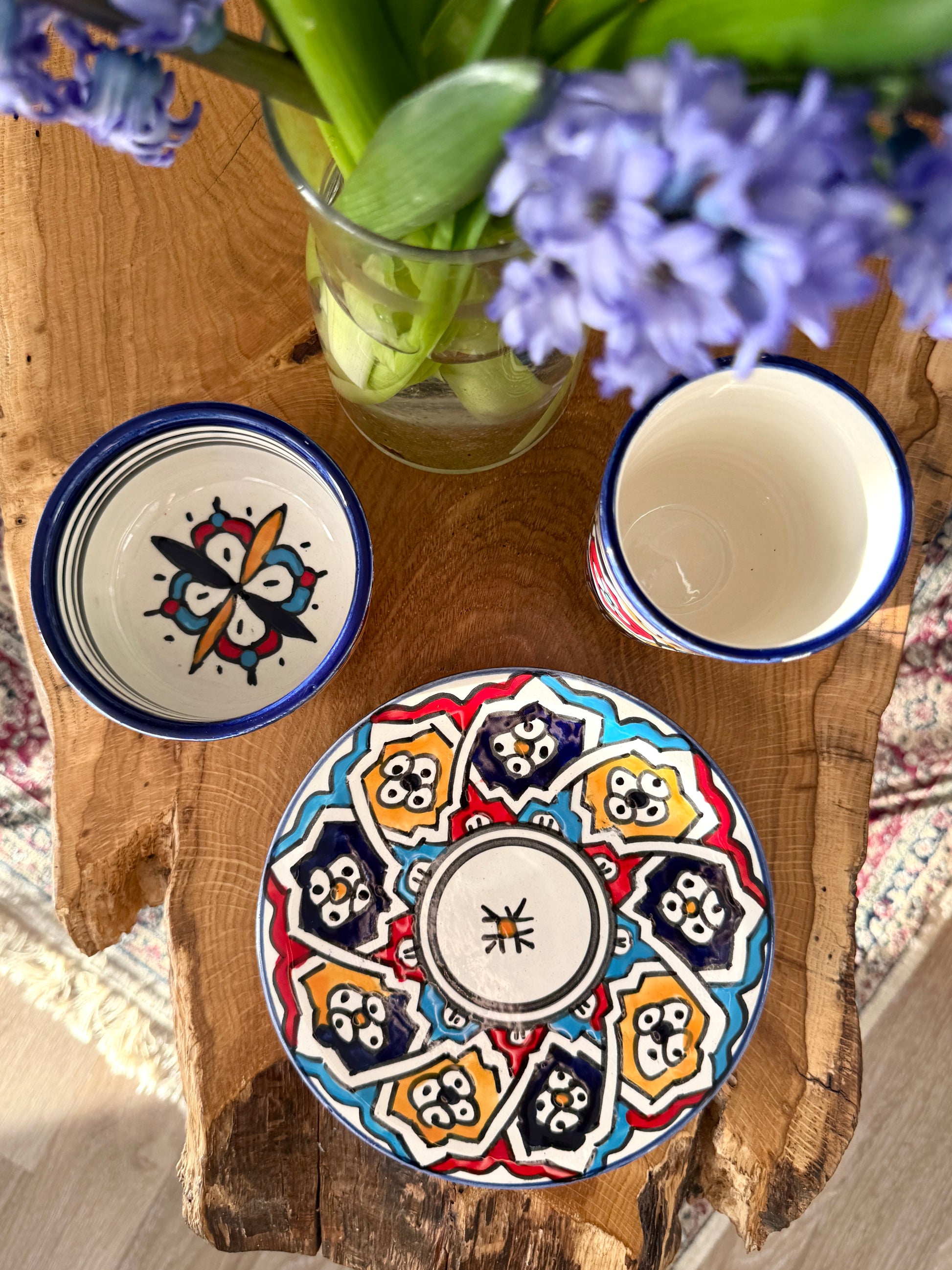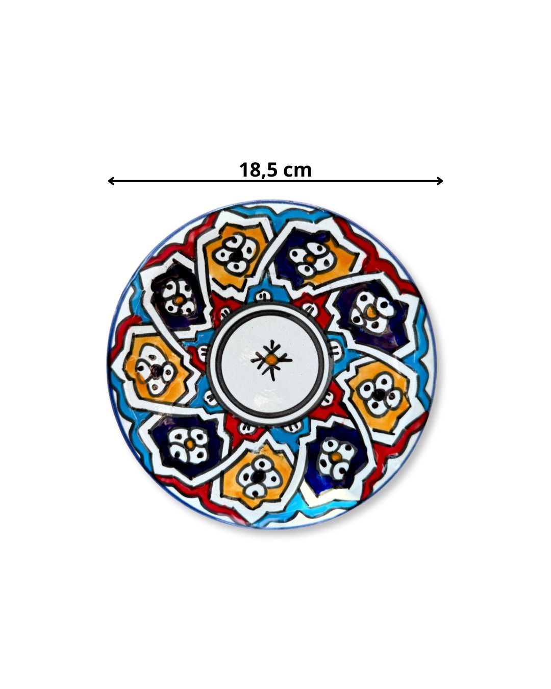 Nasze talerze zostały ręcznie wykonane przez marokańskich rzemieślników, którzy od pokoleń tworzą ceramikę z naturalnej gliny, nadając jej unikalne kształty i bogate wzory. Każdy talerz jest ręcznie malowany i szkliwiony, co zapewnia jego trwałość i wyjątkowy charakter.